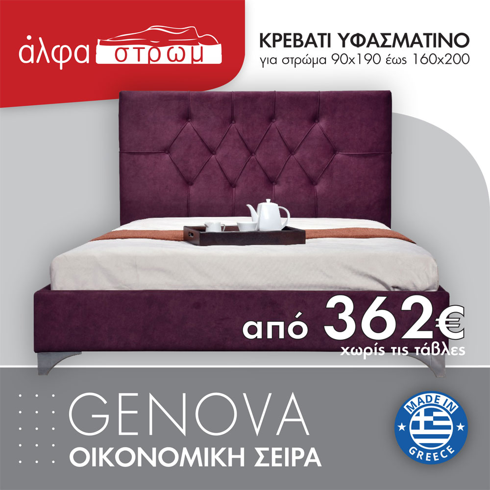 Ένα οικονομικό υφασμάτινο κρεβάτι κατάλληλο για ενήλικες και παιδιά. Είναι ελληνικής κατασκευής και επιλέγετε το ύφασμα της αρεσκείας σας. Τα χρώματα των υφασμάτων μπορεί να διαφέρουν ελαφρώς από την εικόνα. Υπάρχει η δυνατότητα να γίνει κλειστό κουτί που "πατάει" στο πάτωμα (μπαούλο) με έξτρα χρέωση. Επίσης, γίνεται κατασκευή με αποθηκευτικό χώρο με χρήση ανατομικού τελάρου και μηχανισμού ανύψωσης, με έξτρα χρέωση.