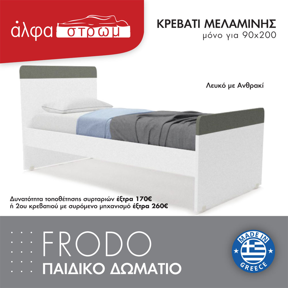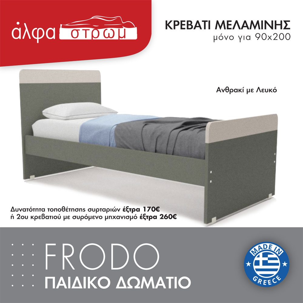 Ένα στιβαρό κρεβάτι μελαμίνης κατάλληλο για παιδιά (και ενήλικες). Είναι ελληνικής κατασκευής και βγαίνει μονόχρωμο ή σε συνδυασμό 2 χρωμάτων. Τα χρώματα των ξύλων και των υφασμάτων μπορεί να διαφέρουν ελαφρώς από την εικόνα.
