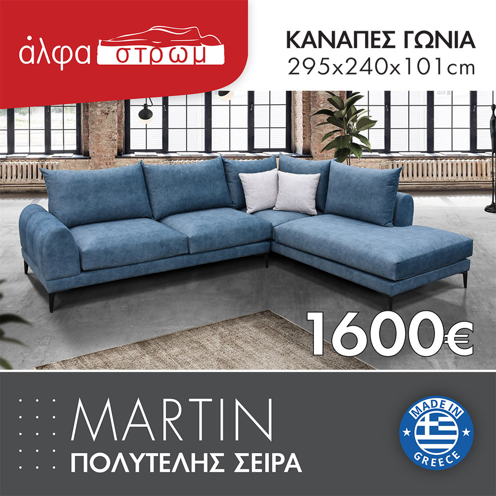 Ένας γωνιακός καναπές με καμπυλωτή πλάτη και ιδιαίτερο καμπύλο μπράτσο με σχέδιο. Έχει χαμηλή βάση με ψηλά πόδια και μαξιλάρια καθίσματος με πομπέ αφρολέξ. Επιλέγετε εξαρχής πού επιθυμείτε να είναι το ανάκλινδρο (αριστερά ή δεξιά - όπως φαίνεται στις φωτογραφίες). Είναι ελληνικής κατασκευής και επιλέγετε τα υφάσματα της αρεσκείας σας καθώς και το χρώμα των ποδιών. Τα χρώματα των υφασμάτων μπορεί να διαφέρουν ελαφρώς από την εικόνα. Υπάρχει η δυνατότητα να γίνει σε άλλες διαστάσεις με έξτρα χρέωση (επικοινωνήστε μαζί μας για τέτοια παραγγελία).