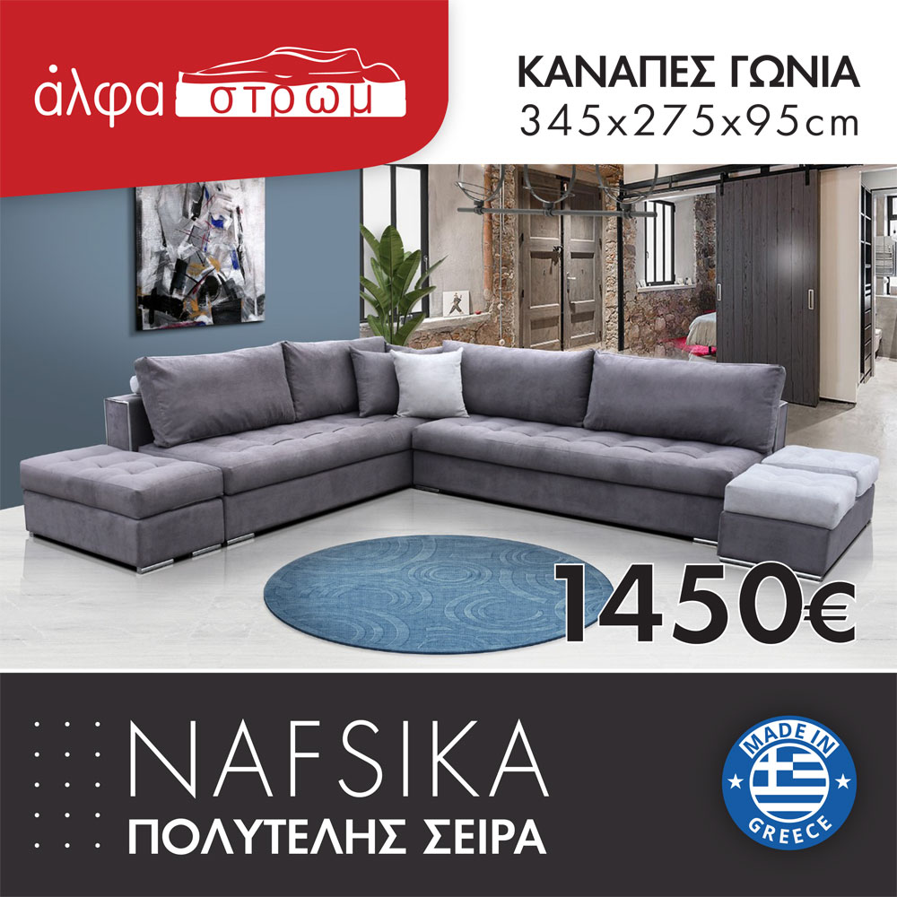 Καναπές σε σχήμα "Π", με σκαμπό ελεύθερης μετακίνησης. Είναι ελληνικής κατασκευής και επιλέγετε τα υφάσματα της αρεσκείας σας. Τα χρώματα των υφασμάτων μπορεί να διαφέρουν ελαφρώς από την εικόνα. Υπάρχει η δυνατότητα να γίνει σε άλλες διαστάσεις με έξτρα χρέωση (επικοινωνήστε μαζί μας για τέτοια παραγγελία).
