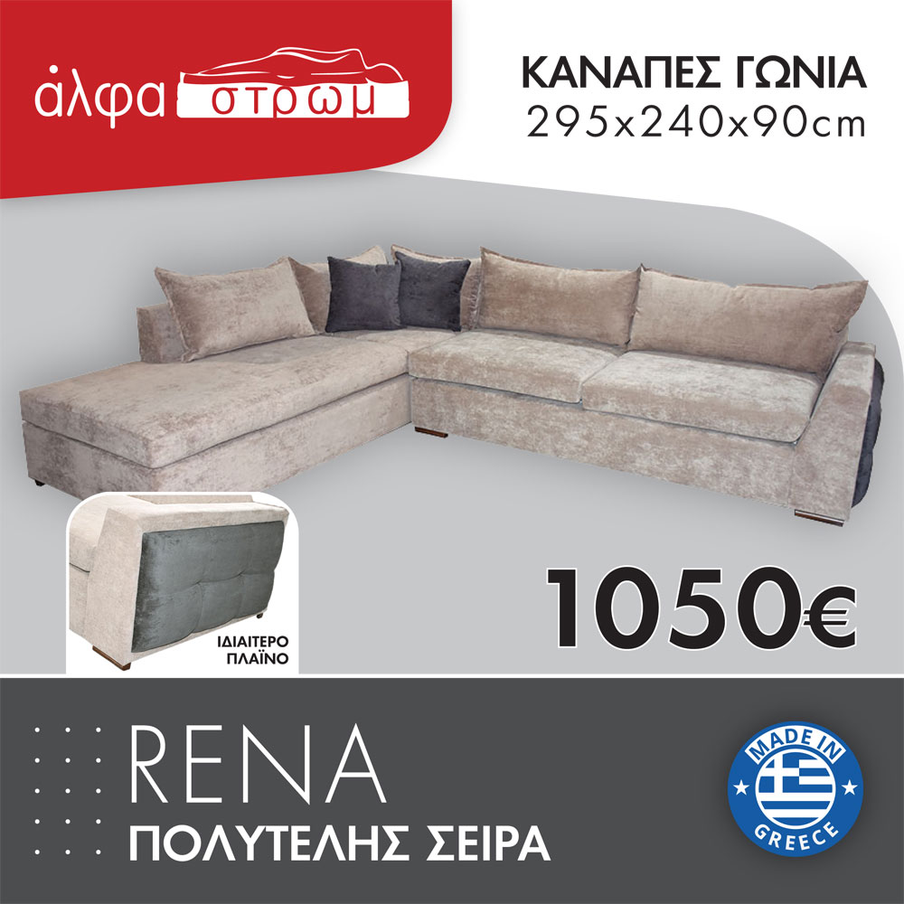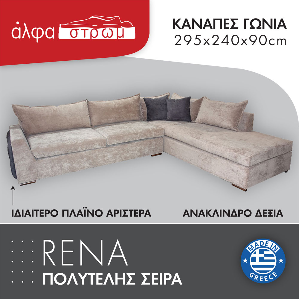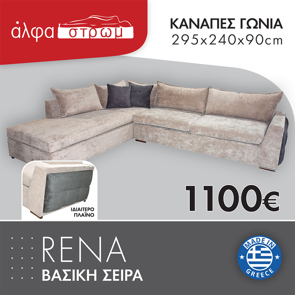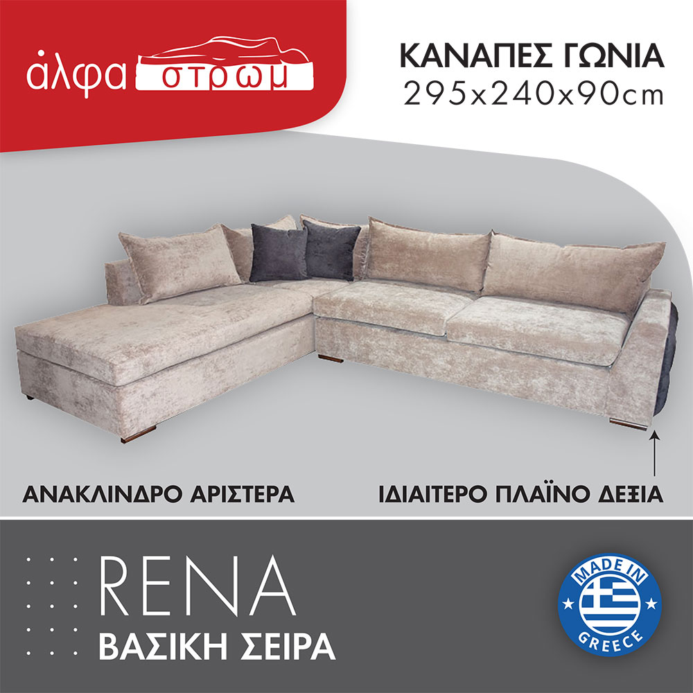 Ένας γωνιακός καναπές με ιδιαίτερο μπράτσο με καπιτονέ σχέδιο. Επιλέγετε εξαρχής πού επιθυμείτε να είναι το ανάκλινδρο (αριστερά ή δεξιά - όπως φαίνεται στις φωτογραφίες). Είναι ελληνικής κατασκευής και επιλέγετε τα υφάσματα της αρεσκείας σας καθώς και το χρώμα των ποδιών. Τα χρώματα των υφασμάτων μπορεί να διαφέρουν ελαφρώς από την εικόνα. Υπάρχει η δυνατότητα να γίνει σε άλλες διαστάσεις με έξτρα χρέωση (επικοινωνήστε μαζί μας για τέτοια παραγγελία).