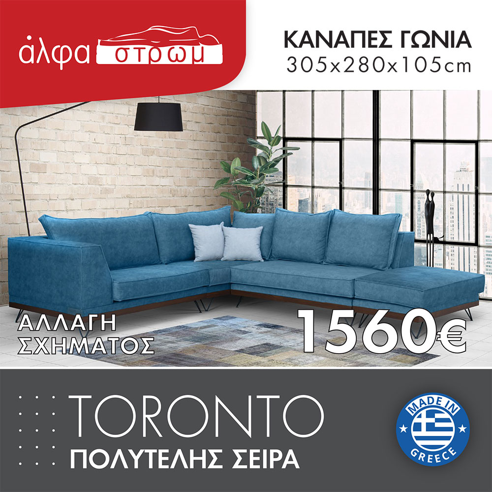 Σύστημα καναπέ αποτελούμενο από τέσσερα (4) τεμάχια, με δυνατότητα τοποθέτησης της γωνίας αριστερά ή δεξιά, εύκολα και γρήγορα, με μια απλή μετακίνηση των τεμαχίων. Ιδιαίτερο στοιχείο του η βάση από ξύλο και ύφασμα που προσδίδει μοντέρνο στιλ. Με ιδιαίτερη ραφή με εξώγαζα στο σκελετό και τα μαξιλάρια. Είναι ελληνικής κατασκευής και επιλέγετε τα υφάσματα της αρεσκείας σας. Τα χρώματα των υφασμάτων μπορεί να διαφέρουν ελαφρώς από την εικόνα. Υπάρχει η δυνατότητα να γίνει σε άλλες διαστάσεις με έξτρα χρέωση (επικοινωνήστε μαζί μας για τέτοια παραγγελία).