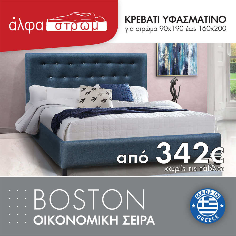 Ένα οικονομικό υφασμάτινο κρεβάτι κατάλληλο για ενήλικες και παιδιά. Είναι ελληνικής κατασκευής και επιλέγετε το ύφασμα της αρεσκείας σας. Τα χρώματα των υφασμάτων μπορεί να διαφέρουν ελαφρώς από την εικόνα. Υπάρχει η δυνατότητα να γίνει κλειστό κουτί που "πατάει" στο πάτωμα (μπαούλο) με έξτρα χρέωση. Επίσης, γίνεται κατασκευή με αποθηκευτικό χώρο με χρήση ανατομικού τελάρου και μηχανισμού ανύψωσης, με έξτρα χρέωση.