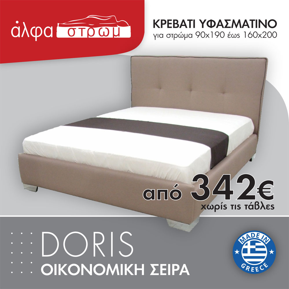 Ένα οικονομικό υφασμάτινο κρεβάτι κατάλληλο για ενήλικες και παιδιά. Είναι ελληνικής κατασκευής και επιλέγετε το ύφασμα της αρεσκείας σας. Τα χρώματα των υφασμάτων μπορεί να διαφέρουν ελαφρώς από την εικόνα. Υπάρχει η δυνατότητα να γίνει κλειστό κουτί που "πατάει" στο πάτωμα (μπαούλο) με έξτρα χρέωση. Επίσης, γίνεται κατασκευή με αποθηκευτικό χώρο με χρήση ανατομικού τελάρου και μηχανισμού ανύψωσης, με έξτρα χρέωση.