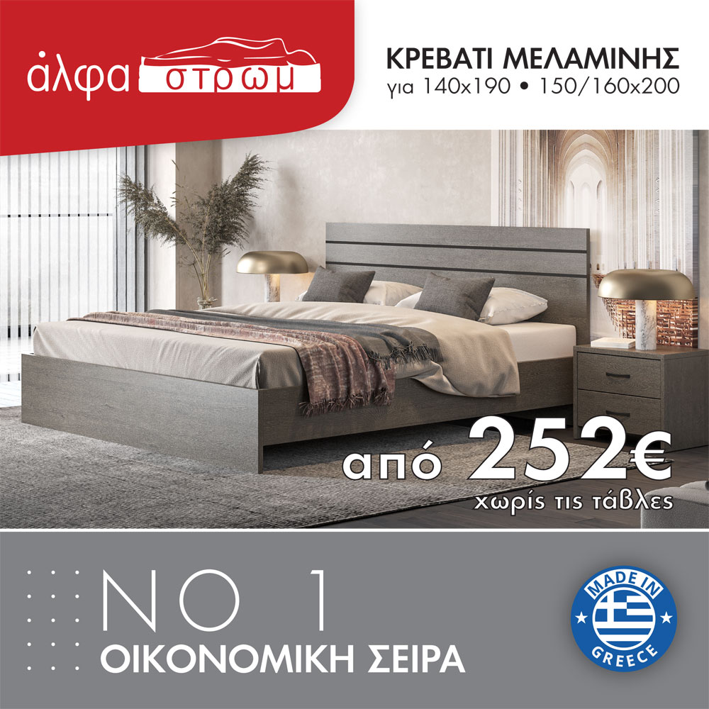 Ένα απλό και οικονομικό κρεβάτι μελαμίνης. Είναι ελληνικής κατασκευής και βγαίνει μονόχρωμο. Τα χρώματα των ξύλων και των υφασμάτων μπορεί να διαφέρουν ελαφρώς από την εικόνα. Υπάρχει η δυνατότητα να γίνει κλειστό κουτί που "πατάει" στο πάτωμα (μπαούλο) με έξτρα χρέωση. Επίσης, γίνεται κατασκευή με αποθηκευτικό χώρο με χρήση ανατομικού τελάρου και μηχανισμού ανύψωσης, με έξτρα χρέωση.