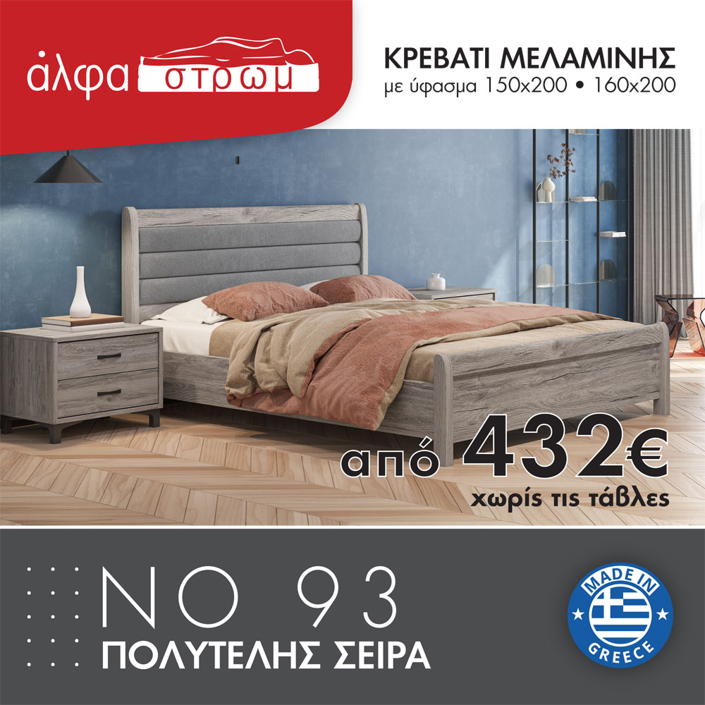 Ένα στιβαρό κρεβάτι με συνδυασμό υφάσματος στο κεφαλάρι. Είναι ελληνικής κατασκευής και επιλέγετε το ύφασμα της αρεσκείας σας για να το συνδυάσετε με το χρώμα μελαμίνης. Τα χρώματα των ξύλων και των υφασμάτων μπορεί να διαφέρουν ελαφρώς από την εικόνα. Υπάρχει η δυνατότητα να γίνει κλειστό κουτί που "πατάει" στο πάτωμα (μπαούλο) με έξτρα χρέωση. Επίσης, γίνεται κατασκευή με αποθηκευτικό χώρο με χρήση ανατομικού τελάρου και μηχανισμού ανύψωσης, με έξτρα χρέωση.